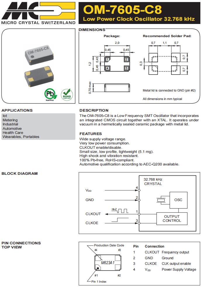 | CC7V-T1A-32.768k-9pF-20PPM-TB-QA | Micro 晶振 | 晶體 32.768 kHz 9.0 pF +/-20 PPM AEC-Q200 | Crystals |