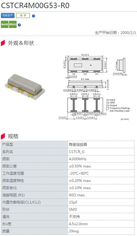 進口村田晶振,CSTCR-G系列晶振,CSTCR4M00G53-R0晶振