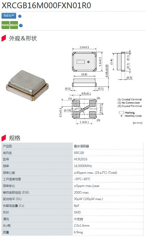 日本村田晶振,XRCGB系列晶振,HCR2016晶振,XRCGB16M000FXN01R0晶振