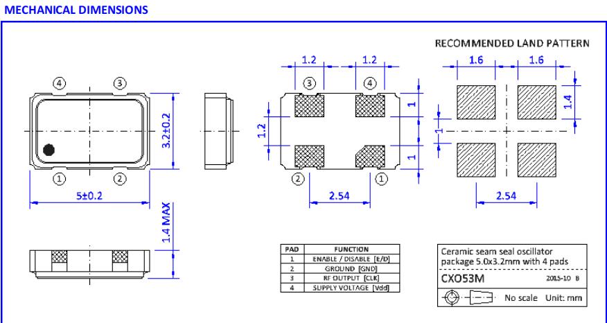 NKG晶振|SCO5-6-A-32.0000-MTS-EXT|5032mm振蕩器尺寸圖