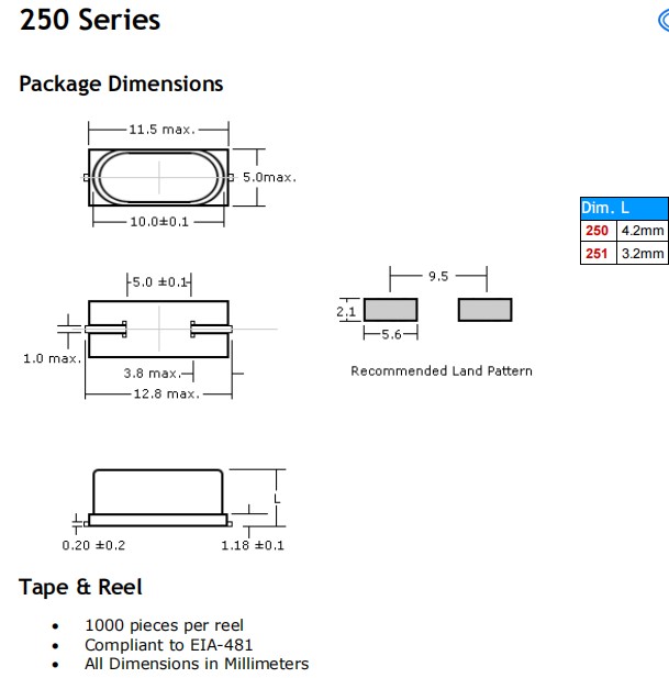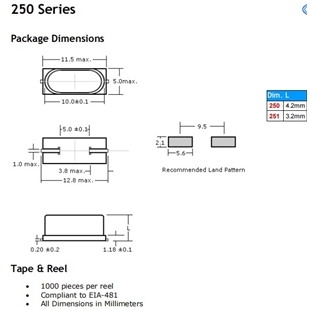 OSCILENT晶振,250-14.7456M-20-05KS-TR,6G無線局域網晶振規格表