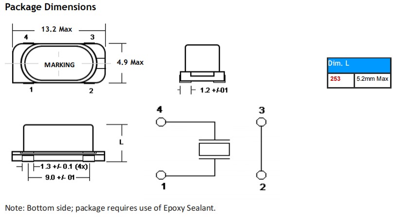 美國Oscilent晶振,253-25.0M-18-15GW-TR,6G低成本晶振尺寸圖