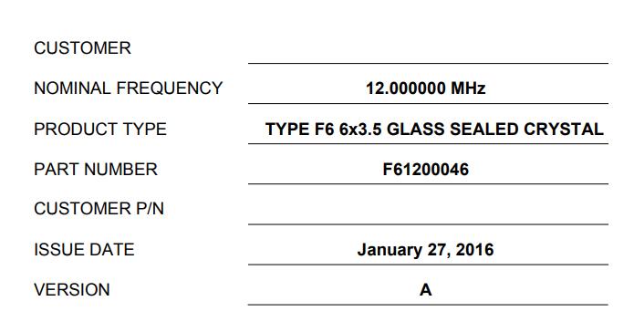 Diodes晶振,F6晶振,F61200046晶振此款SMD晶振并且可以承受回流焊接的高溫,波峰焊接,回流焊接等,貼片表晶主要特點是該產品排帶包裝,焊接模式主要使用SMT焊接,給現代SMT工藝帶來高速的工作效率