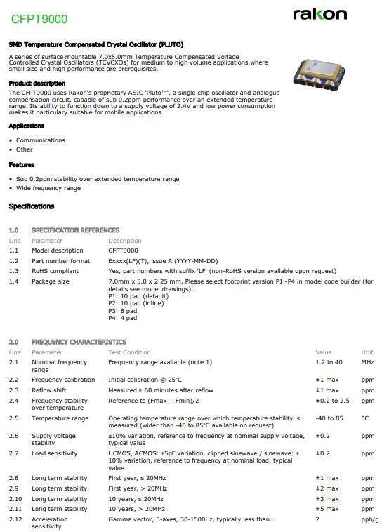 RAKON晶振,CFPT9000晶振,7050溫補晶振