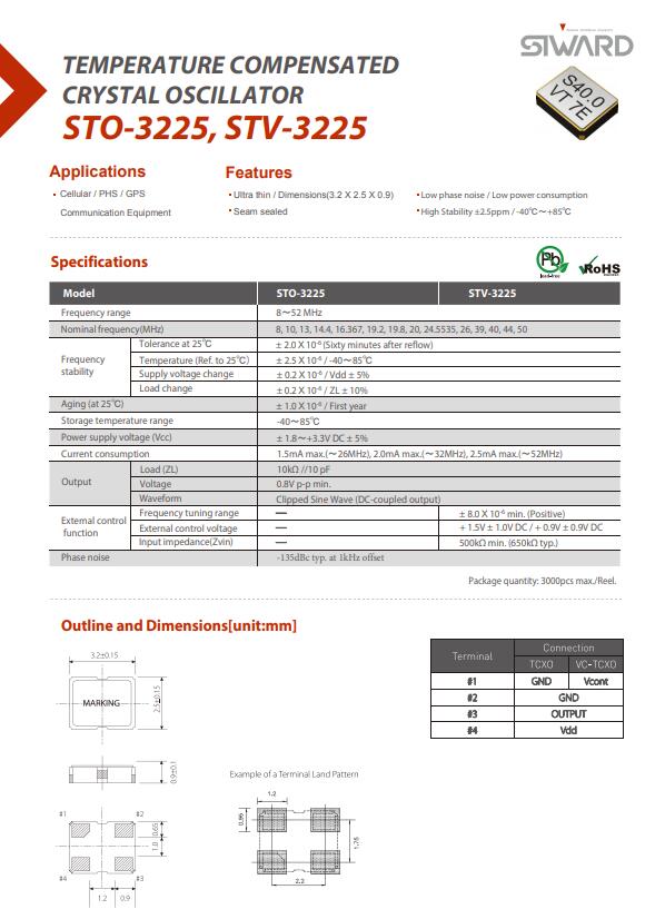 希華晶振,STO-3225,STV-3225晶振,3225壓控溫補晶振