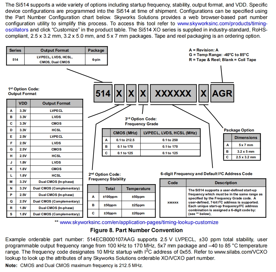 | 514BAA000643BAGR | Skyworks Solutions Inc. | Si514 | 212.5 MHz | LVDS | 3.3V | ±50ppm |