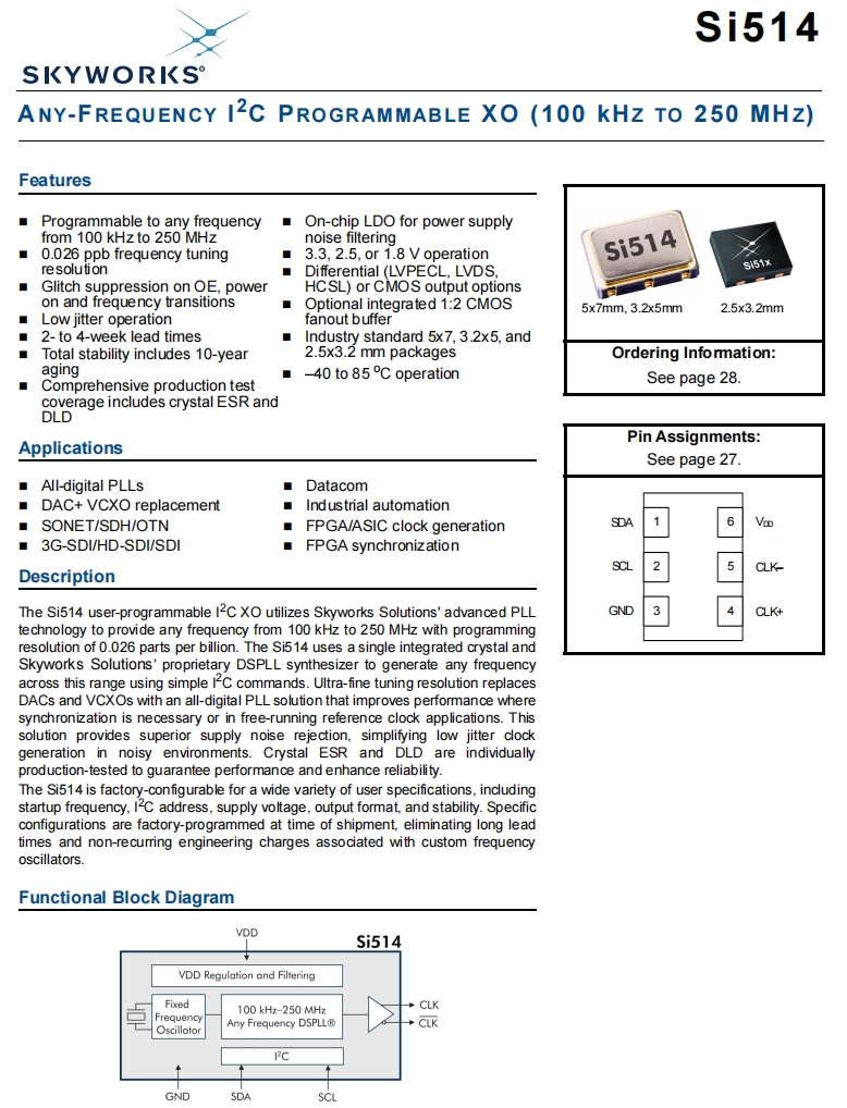 | 514JCA000126BAG | Skyworks Solutions Inc. | Si514 | 200 MHz | LVDS | 1.8V | ±20ppm |