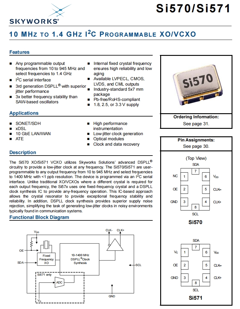 | 571AMA000501DG | Skyworks Solutions Inc. | Si571 | 1.333 GHz | LVPECL | 2.97V ~ 3.63V | ±20ppm |