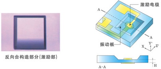 愛普生晶振使用光刻加工,通過只將晶體晶片的激勵部加工成數微米的極薄的構造(反向臺構造),可以在保持石英貼片晶振晶片的強度的同時,將高頻中的基波振蕩變為可能.