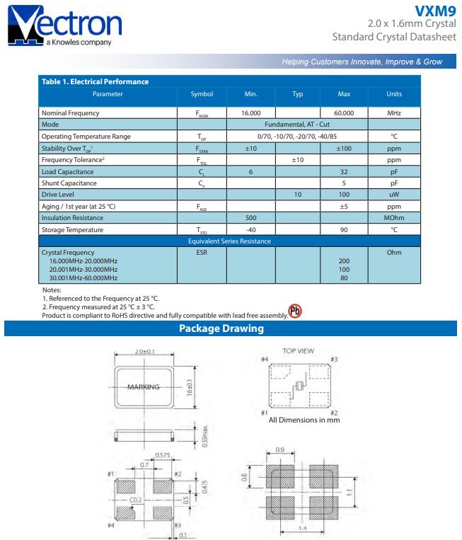 Vectron晶振,VXM9晶振,2016無源晶振crystal是一種機電器件,是用電損耗很小的石英晶體經精密切割磨削并鍍上電極焊上引線做成。這種晶體有一個很重要的特性,如果給他通電,他就會產生機械振蕩,反之,如果給他機械力,他又會產生電,這種特性叫機電效應。他們有一個很重要的特點,其振蕩頻率與他們的形狀,材料,切割方向等密切相關。由于石英晶體化學性能非常穩定,熱膨脹系數非常小,其振蕩頻率也非常穩定,由于控制幾何尺寸可以做到很精密,因此,其諧振頻率也很準確。