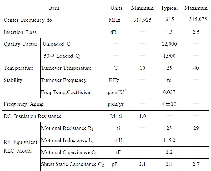 聲表面諧振器,F11-R315聲表面濾波器,收音機聲表面濾波器