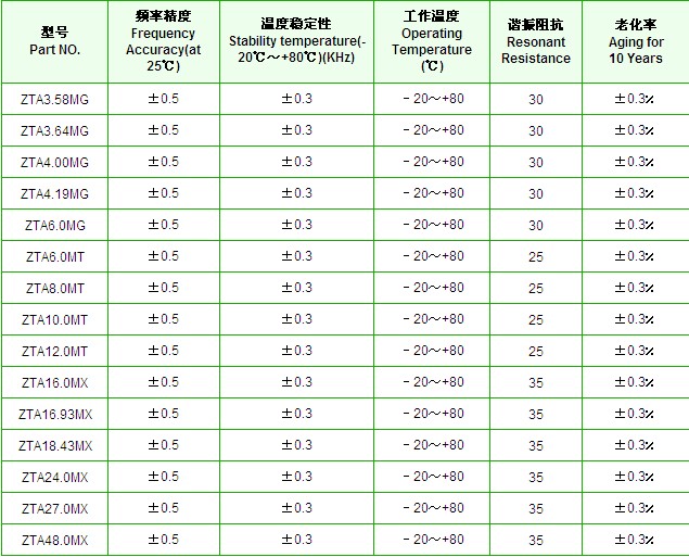 ZTALS陶瓷諧振器規格