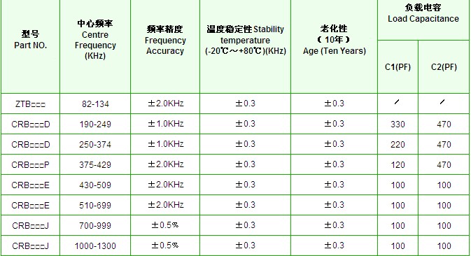 ZTB455陶瓷諧振器規格