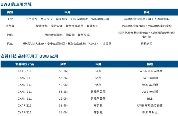 安基晶振的高性能晶體產品線滿足 UWB 技術在當今短距離高帶寬應用中的頻率控制需求,優化無線通信。
