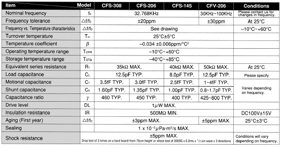 西鐵城晶振CFS206,進口晶振,石英晶振