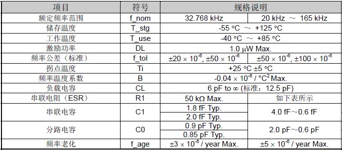 頻率范圍32.768千赫20千赫?165千赫,外部尺寸規格產品8.0×3.8×2.54毫米MC306,10.41×4.06×3.6毫米的MC-405