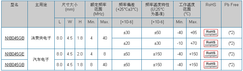 晶體NX8045GB,陶瓷面晶振,NDK二腳貼片晶振貼片晶振本身體積小,超薄型石英晶體諧振器,特別適用于有目前高速發展的高端電子數碼產品,因為晶振本身小型化需求的市場領域,小型?薄型是對應陶瓷諧振器(偏差大)和普通的石英晶體諧振器(偏差小)的中間領域的一種性價比較出色的產品.產品廣泛用于筆記本電腦,無線電話,衛星導航HDD, SSD, USB, Blu-ray等用途,符合無鉛焊接的高溫回流焊曲線特性.