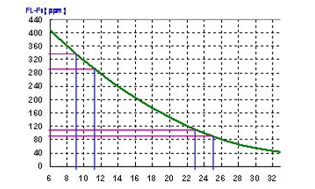 CL=24 pF 時的頻率敏感度是10 ppm/pF, 及CL=10 pF時的頻率敏感度是20 ppm/pF. 在并聯線路中, 負載電容越小, 頻率對負載電容變化的敏感度越高. 相反的, 負載電容越大, 頻率對負載電容變化的敏感度越低. 這就是石英晶體共振子用于VCXO線路上時, 線路設計上會選用較小負載電容. 在要求較準確的頻率信號時, 線路設計上會選用較高的負載電容.