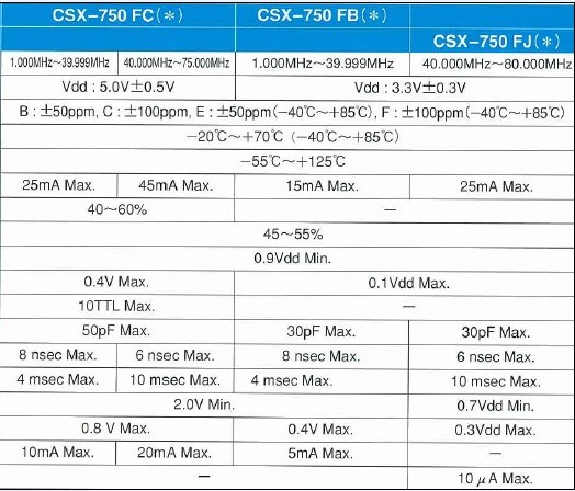 振蕩器CSX750F規格