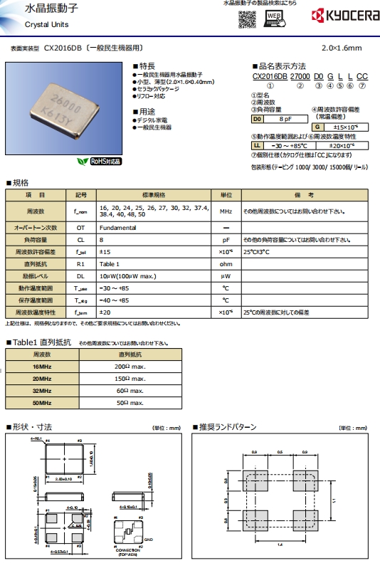 | CX3225GB16000P0HPQCC | AVX Corp/Kyocera Corp | CX3225GB, Kyocera | MHz Crystal | 16MHz |
