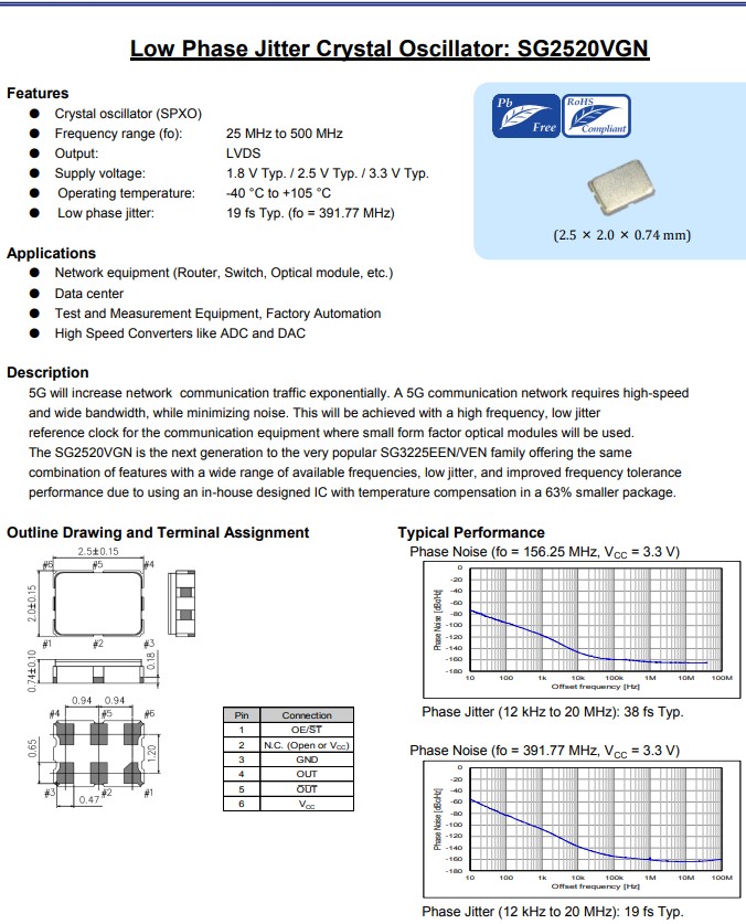 SG2520VGN差分晶振X1G005901000215適用于5G通信網絡設備應用