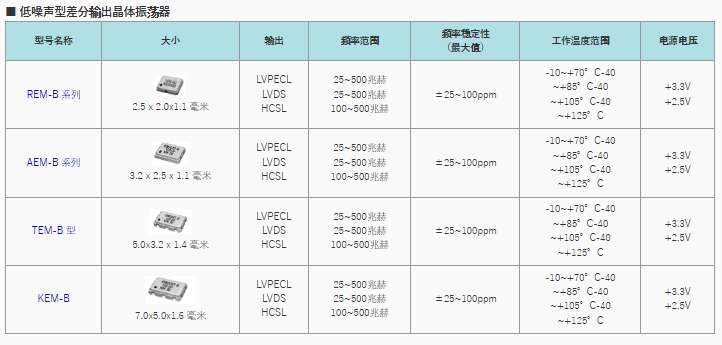 高頻和超低噪聲差分輸出晶體振蕩器REM-B/AEM-B/TEM-B/KEM-B的開發